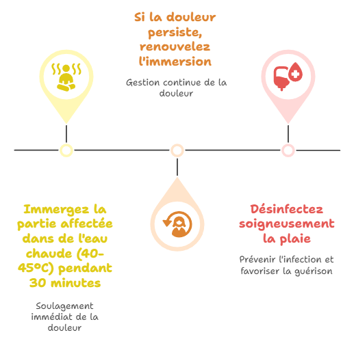 Si malgré toutes ces précautions vous êtes victime d’une piqûre, n’oubliez pas : la chaleur est votre meilleure alliée. Ce geste simple et efficace vous permettra de reprendre rapidement vos activités et de profiter pleinement de vos vacances balnéaires.