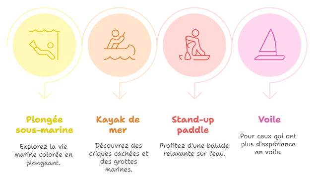 La madrague de Gignac constitue un point de départ idéal pour de nombreuses activités que nous avons eu le plaisir de tester lors de nos multiples séjours dans la région. Les amateurs d’activités nautiques y trouveront particulièrement leur compte, avec des eaux limpides parfaites pour la pratique de: